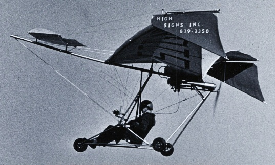 During this time, Ken turned his love of flying into a profitable business by using a powered hang glider to form an aerial advertising company called “High Signs”. Ken would write a commercial message on the wing using black masking tape. He would then fly over parades, large gatherings, and sporting events on weekends, saving the money he and his wife needed for a house, since a baby was due soon.